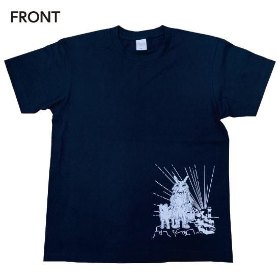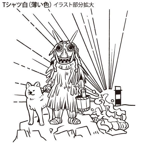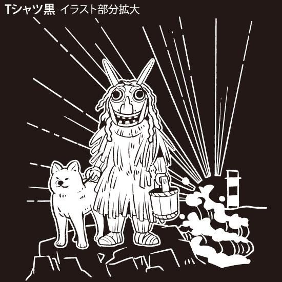 男鹿のナマハゲが秋田犬を連れている…秋田要素をコミカルに詰め込んだ「ナマハゲの散歩」Tシャツ。何ともユニークなデザインです。